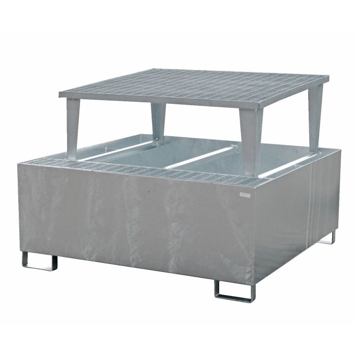 Staal verzinkte IBC lekbak voor 1 IBC / KTC van 1.000 ltr. Voor een veilige opslag van verpakte gevaarlijke stoffen overeenkomstig PGS 15 (voorheen CPR 15-1), VLAREM, ARAB, CODEX