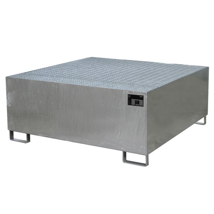 Staal verzinkte IBC lekbak vloeistofdicht gelast en gecertificeerd, voor het plaatsen van 1 IBC, KTC en ASF of ASP container van 1.000 liter. Een veilige en praktische oplossing voor de opslag van de werkvoorraad.
