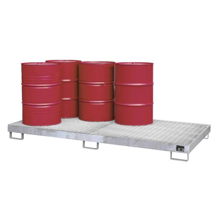 Verzinkte lekbak voor 8 stuks 200 ltr. vat of kleine emballage. Voor een veilige opslag van verpakte gevaarlijke stoffen overeenkomstig PGS 15 (voorheen CPR 15-1), VLAREM, ARAB, CODEX