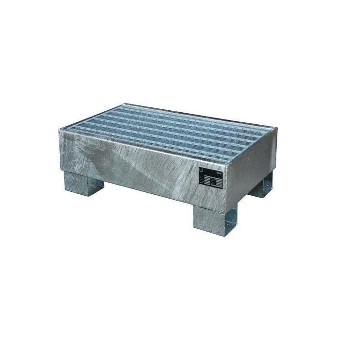 Stalen verzinkte lekbak, met rooster voor 1 vat à 60 liter + klein emballage. Voor een veilige opslag van verpakte gevaarlijke stoffen overeenkomstig PGS 15 & VLAREM.
